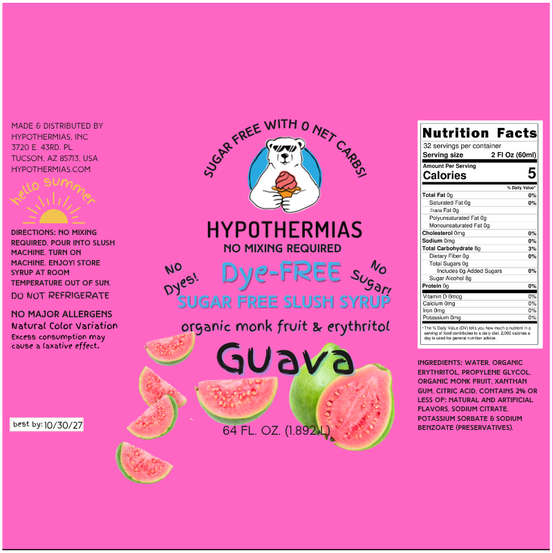 Guava | Hypothermias SUGAR FREE Dye-FREE Slush Syrup | Half Gallon