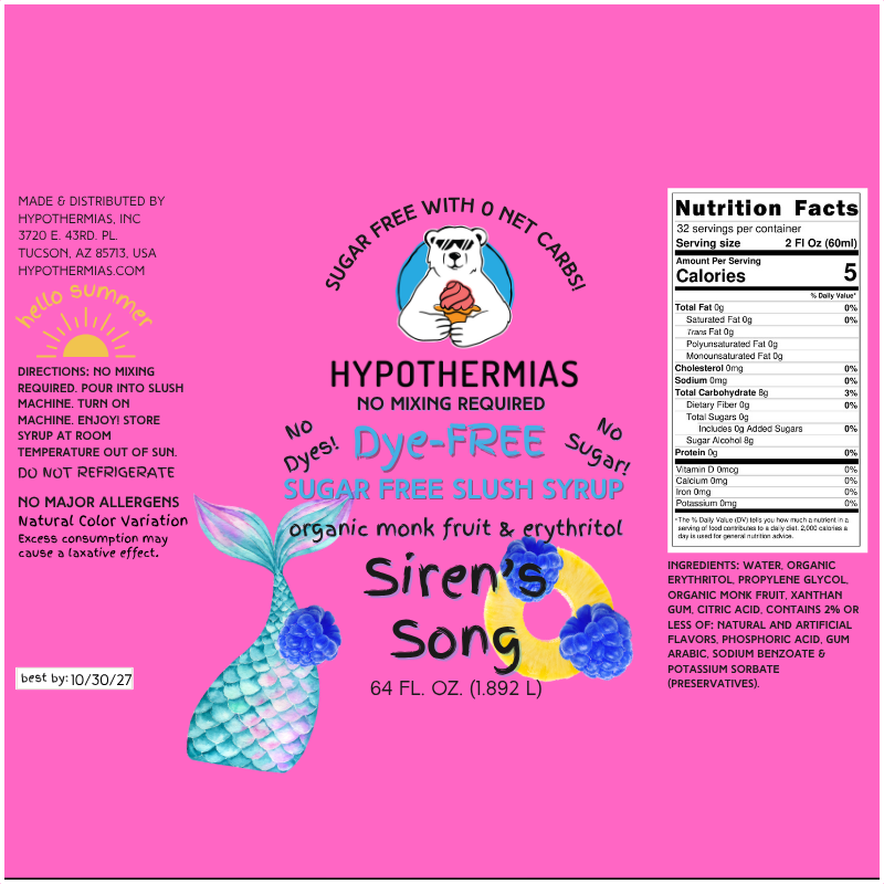 Siren's Song | Hypothermias SUGAR FREE Dye-FREE Slush Syrup | Half Gallon
