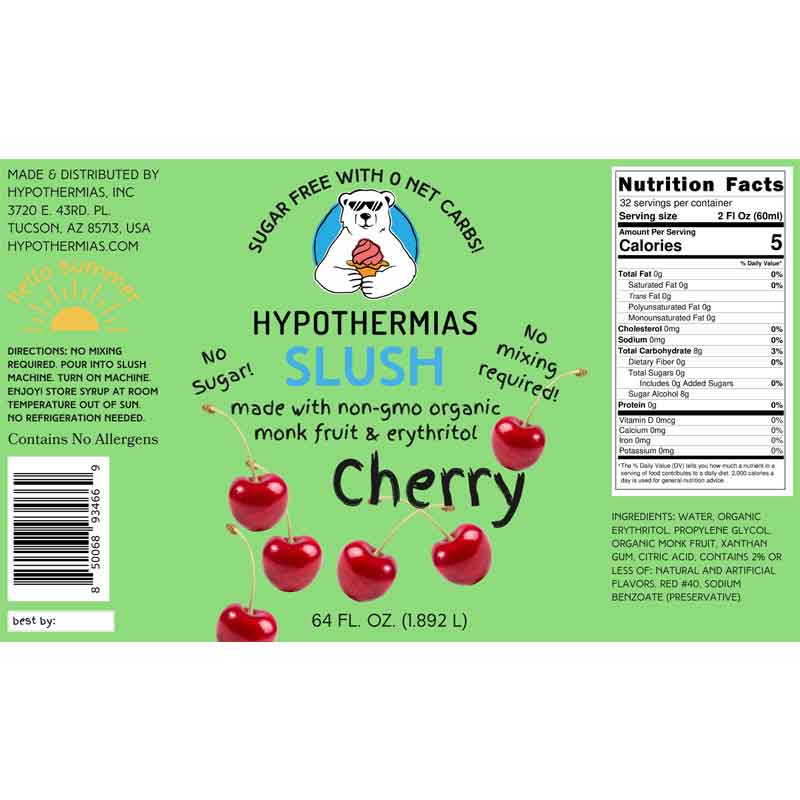 Hypothermias SUGAR FREE Slush | Monk Fruit | Cherry (Half Gallon)