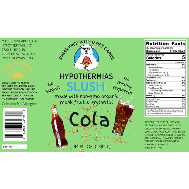 Hypothermias SUGAR FREE Slush | Monk Fruit | Cola (Half Gallon)