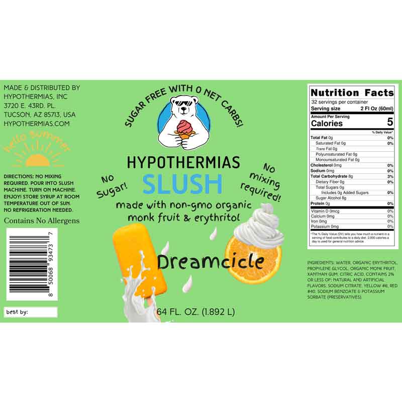 Hypothermias SUGAR FREE Slush | Monk Fruit | Dreamcicle (Half Gallon)