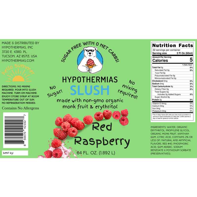 Hypothermias SUGAR FREE Slush | Monk Fruit | Red Raspberry (Half Gallon)